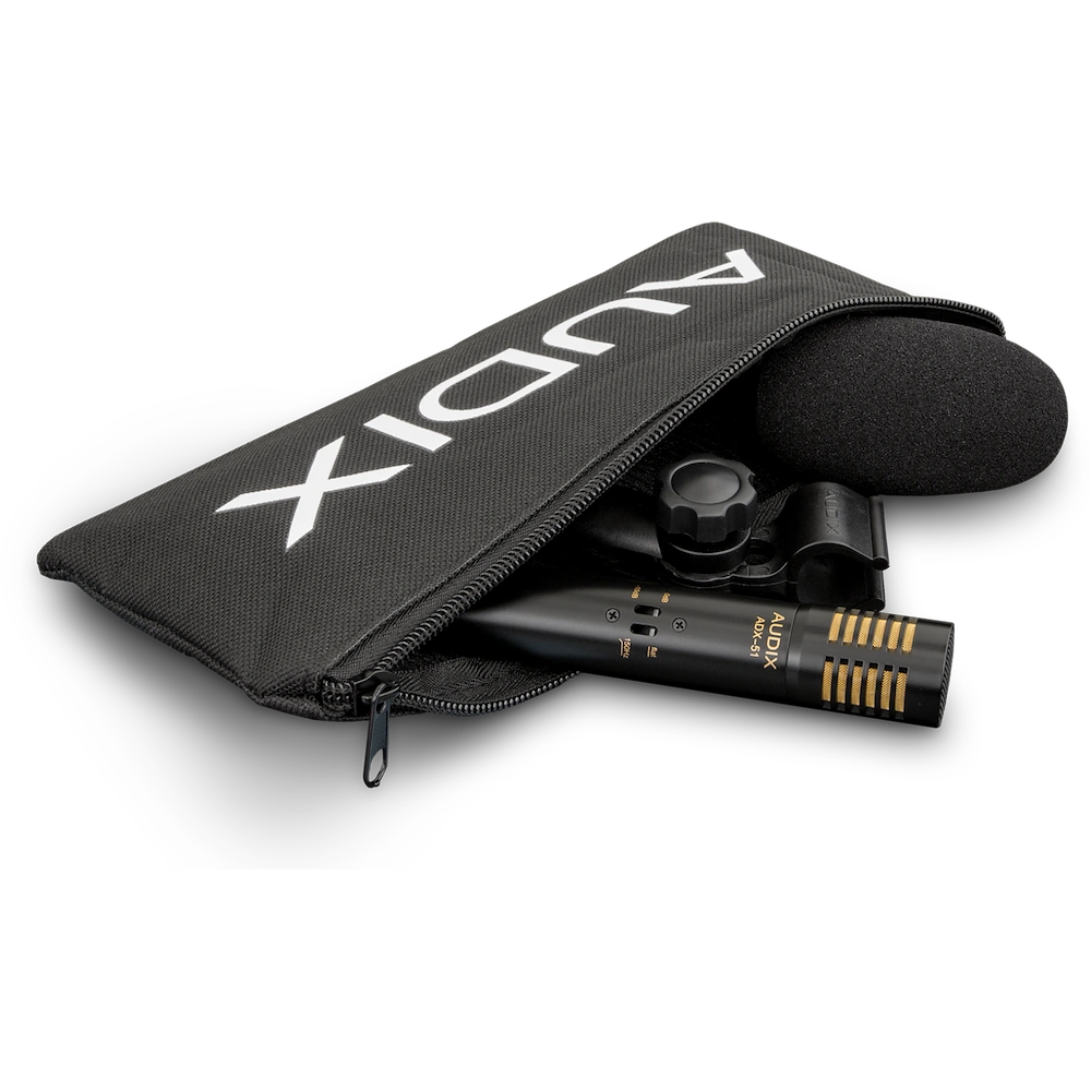 The Audix ADX51 is a professional pre-polarized condenser microphone built for stage, studio, and broadcast applications, offering clear and accurate acoustic reproduction across a wide range of instruments. Its uniformly controlled cardioid polar pattern is engineered to capture the source instrument while rejecting off-axis bleed from surrounding sources on stage or in the studio. The 14 mm gold vapor diaphragm delivers a wide frequency response of 40 Hz to 18 kHz, while the onboard -10 dB pad and 150 Hz bass roll-off filter provide the flexibility needed for both close and distance miking scenarios. The ADX51 is well suited for audio engineers, system integrators, houses of worship, and broadcast facilities requiring consistent, reliable condenser performance.