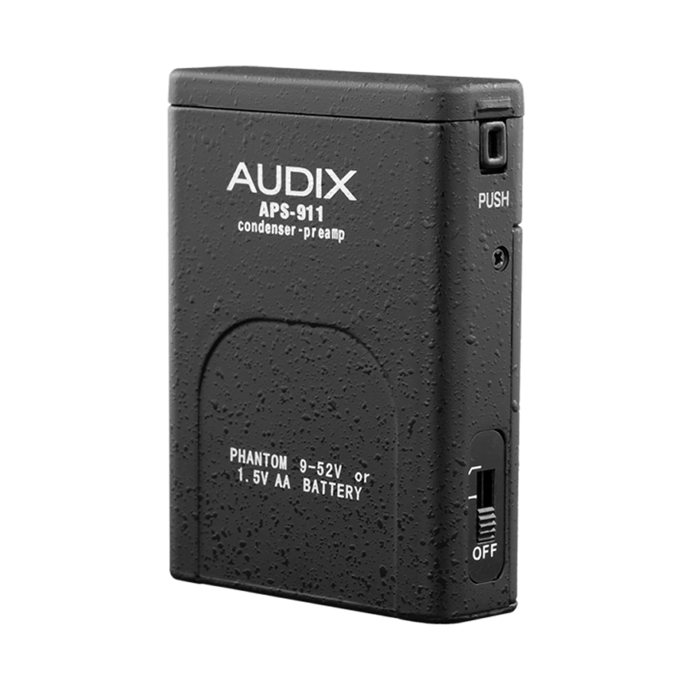 • AA Battery Operation — powers compatible Audix condenser microphones independently of console or preamp phantom power