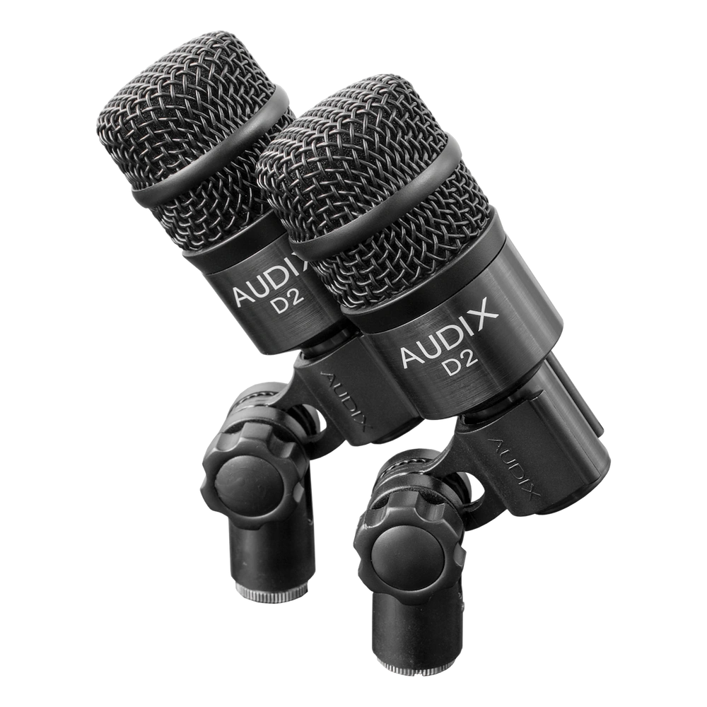 - Two Audix D2 Dynamic Microphones — Dedicated rack tom coverage with the D2’s hypercardioid pattern for isolation in dense stage environments