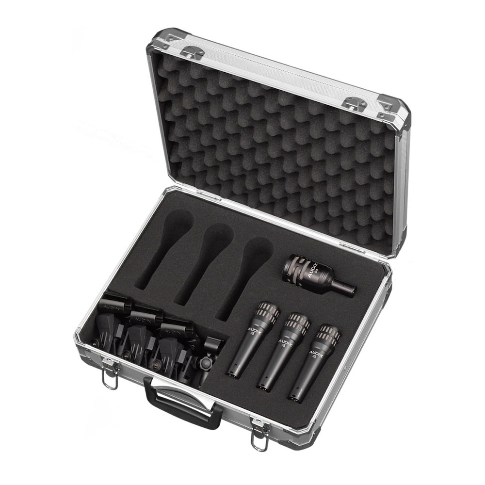 • Three Audix i5 Instrument Microphones — Audix’s best-selling dynamic instrument microphone, suitable for snare, toms, guitar cabinets, brass, and a broad range of close-mic applications