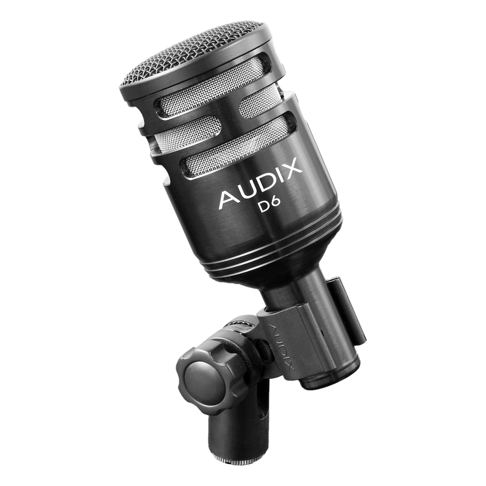 • Audix D6 Kick Drum Microphone — Audix’s flagship dynamic microphone optimized for close miking kick drum, delivering the low-end punch and attack definition required in live and studio environments