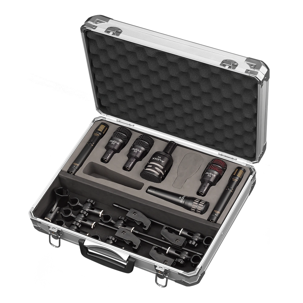 The Audix DP7 is a purpose-built drum microphone package that delivers a complete, stage-ready and studio-ready mic solution in a single kit. The package centers on the Audix D6, Audix’s flagship kick drum microphone, and rounds out the kit with two D2 dynamic microphones for rack toms, a D4 for floor tom, the i5 for snare, and a pair of ADX51 studio condenser microphones for overhead miking. The DP7 is suited for touring drummers, live sound engineers, studio engineers, and production companies requiring a proven, cohesive drum mic solution.