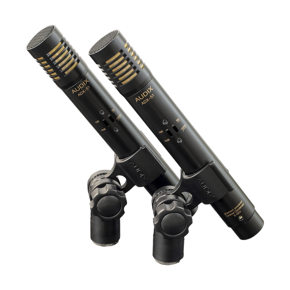 • Pair of Audix ADX51 Studio Condenser Microphones — matched overhead condensers for accurate cymbal and kit-wide capture in live and studio settings