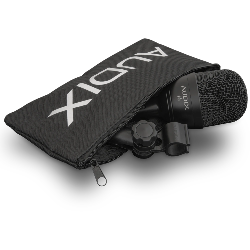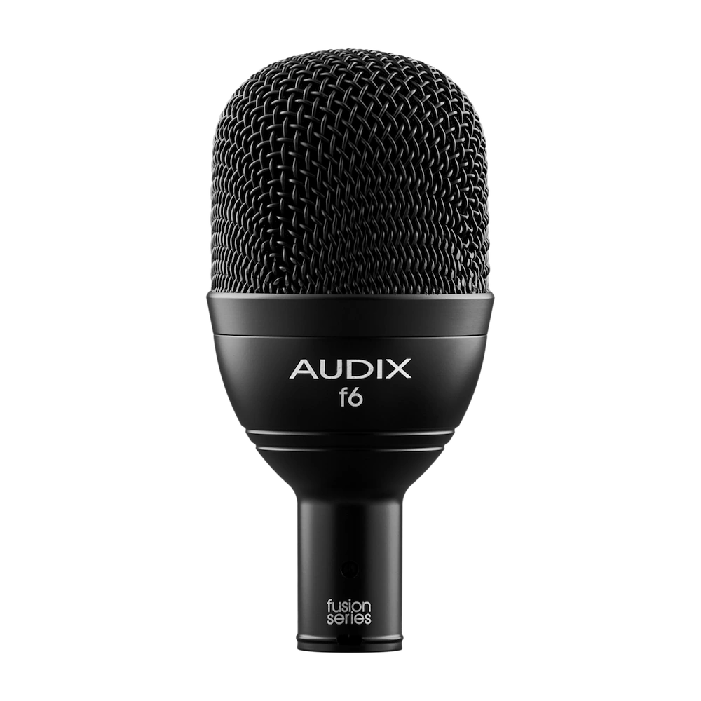 The Audix F6 is a dynamic instrument microphone engineered for bass and kick drum reproduction in live and studio applications, featuring a hypercardioid pickup pattern for feedback rejection and isolation.