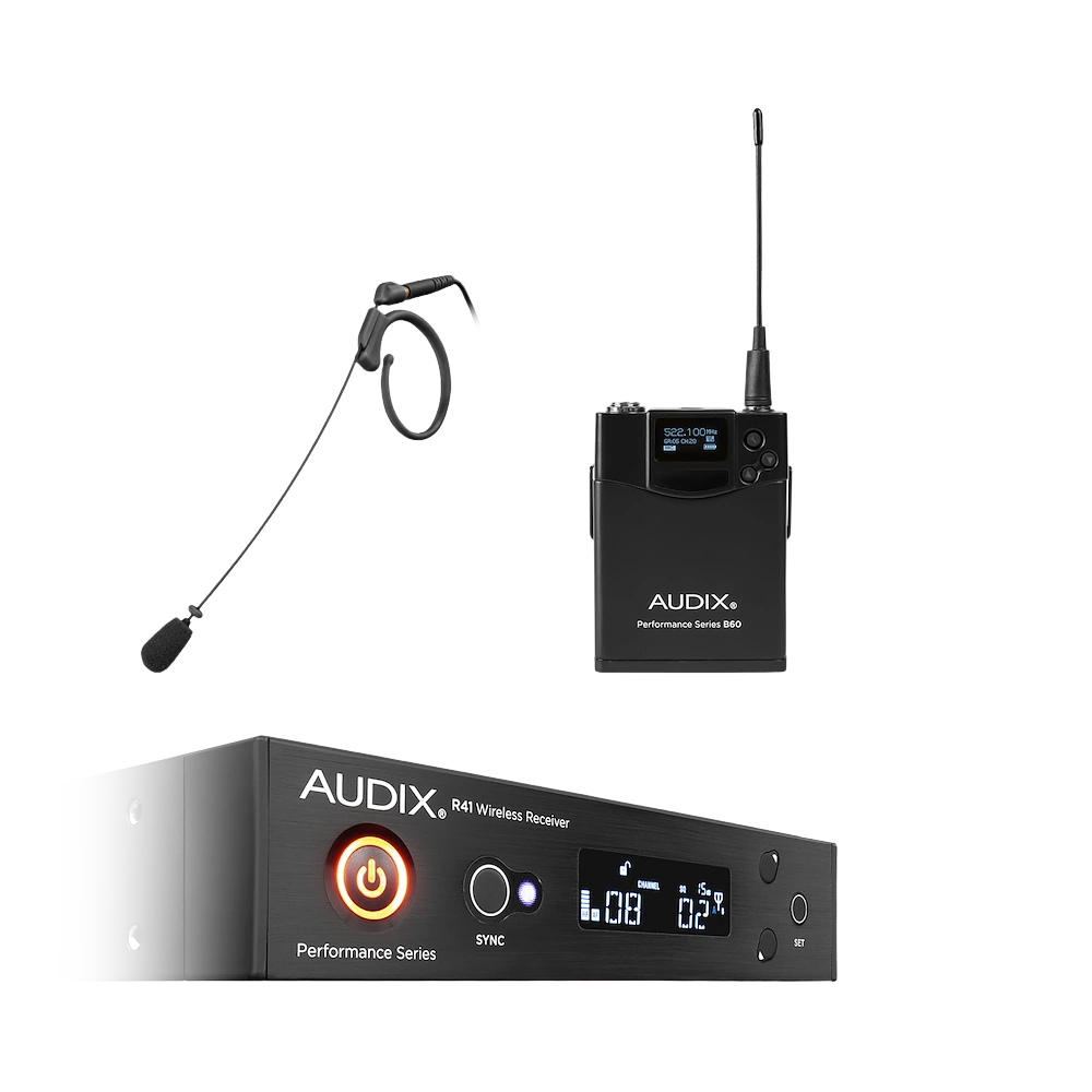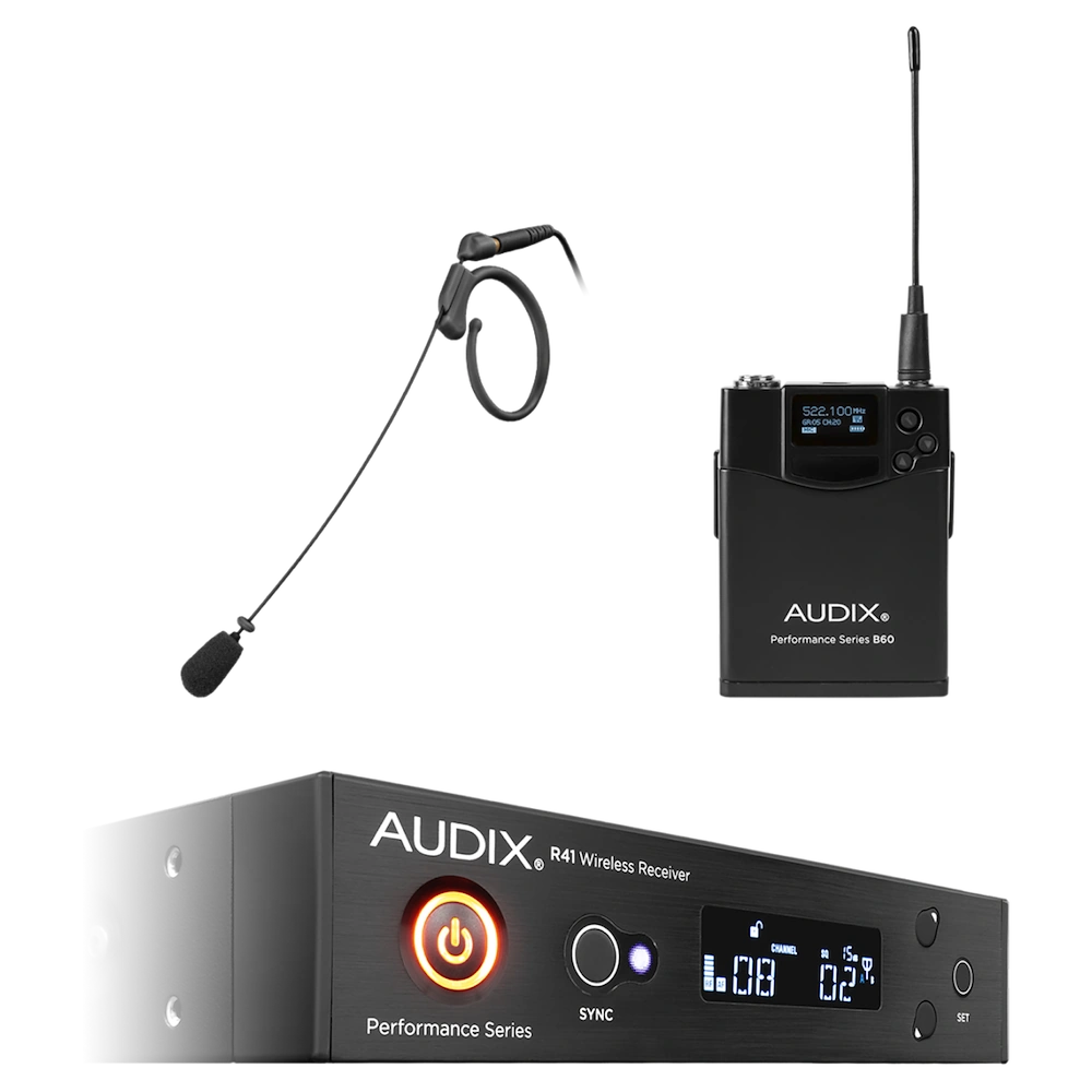 The Audix R41 RX / B60 with HT7 is a complete professional diversity wireless system built for demanding stage, presentation, and broadcast environments. At the heart of the package is the HT7 single-ear headworn condenser microphone, the smallest microphone in the Audix lineup with a miniaturized 3mm element. The HT7 operates with an omnidirectional polar pattern, delivering consistent pickup regardless of head movement, making it well-suited for presenters, performers, and broadcast talent. This system is a practical solution for audio engineers, houses of worship, corporate AV integrators, and touring productions requiring a low-profile, reliable wireless headworn setup.
