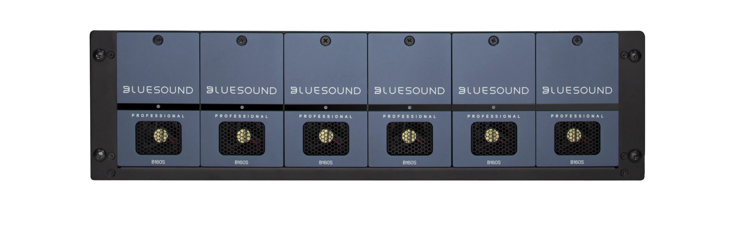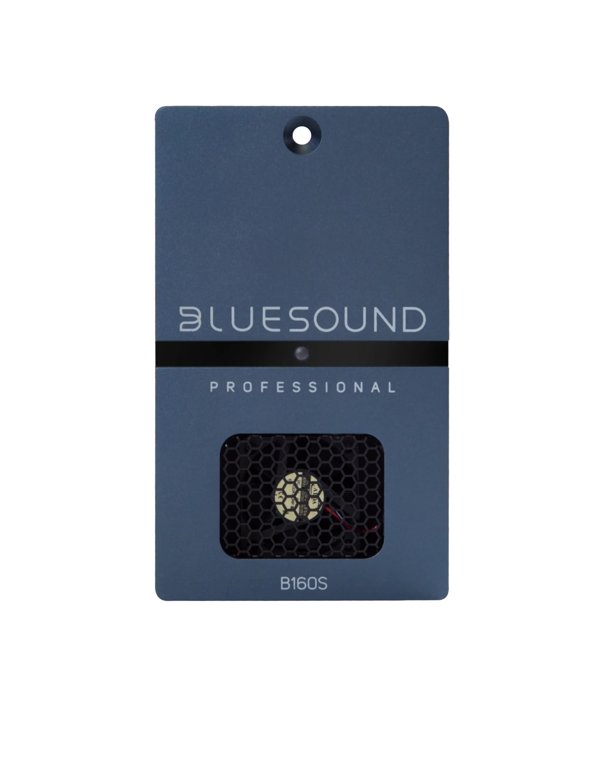 Built on the BluOS platform, the B160S supports streaming from local network storage and various commercial streaming services, including SoundMachine, Custom Channels, SiriusXM for Business, Qsic, and Tunify. It can function as a standalone unit or be integrated into a larger BluOS system, allowing for flexible grouping with other B160S units or Bluesound Professional players.