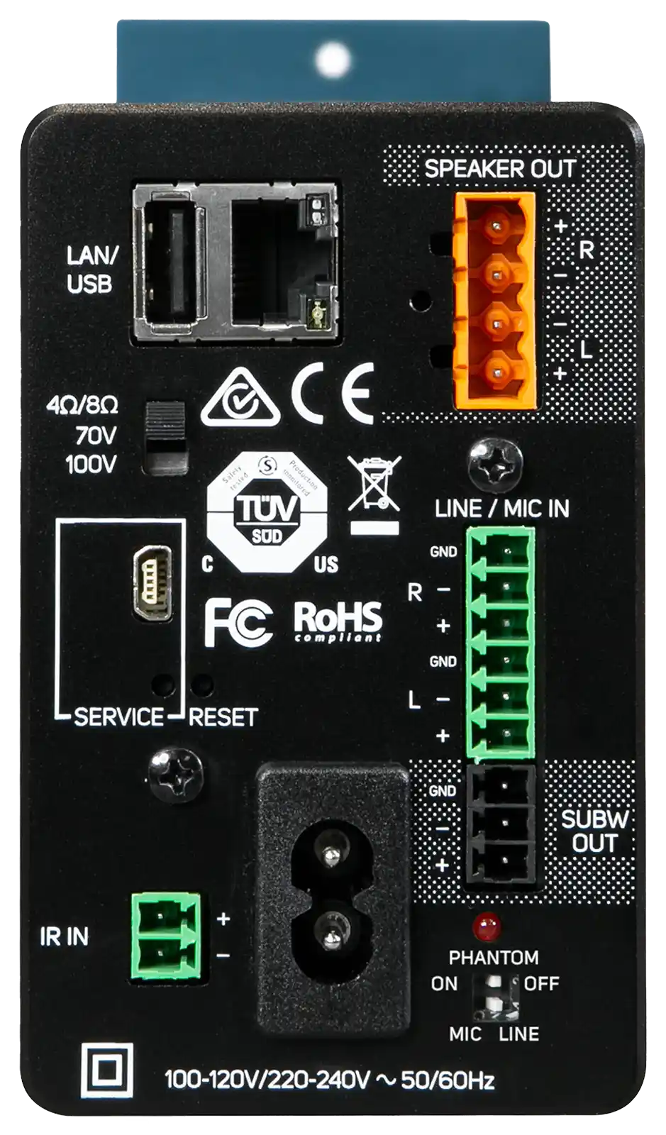 The Bluesound Professional B170S is a comprehensive solution for commercial audio installations, combining a high-quality stereo amplifier with a BluOS-enabled network music player. Designed for versatility, it supports both low impedance and constant voltage outputs, making it ideal for various commercial environments such as retail stores, restaurants, offices, and hospitality venues.