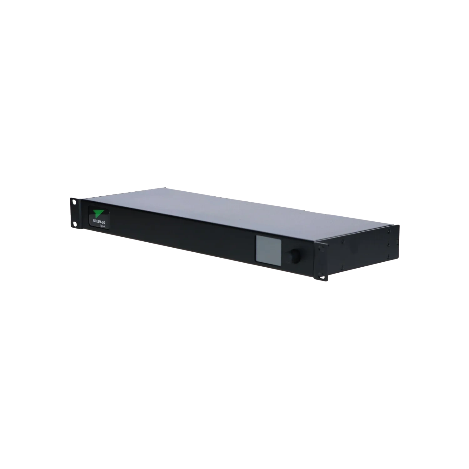 Green-GO Multichannel X Desk front panel with illuminated channel controls and LCD display