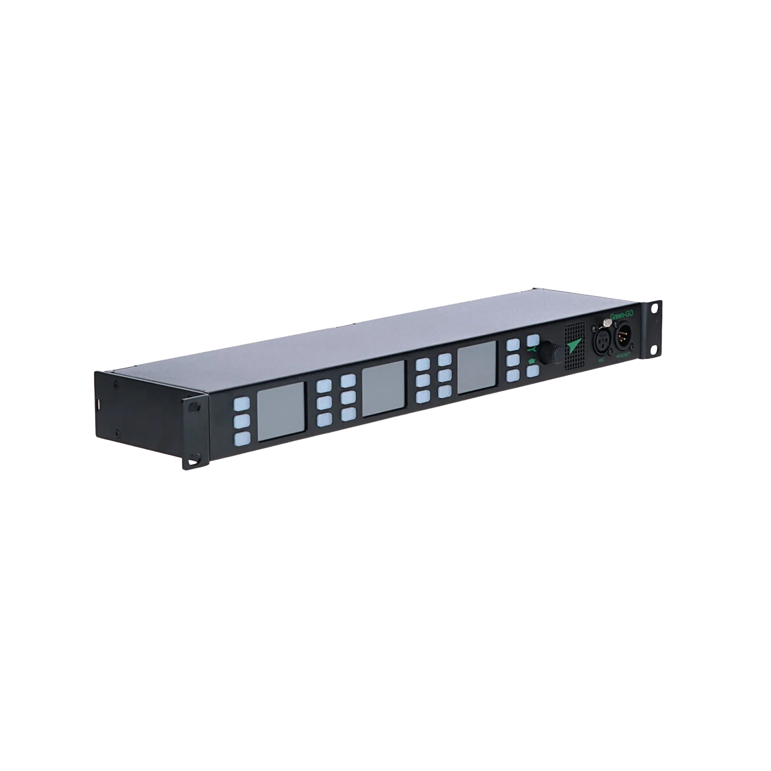 The Green-GO Multichannel X is a rack-mount user station designed for integration within the Green-GO digital intercom ecosystem. Built for demanding communication environments, it provides operators with 32 multicolour push-buttons for direct channel access and three full-colour TFT touchscreens for intuitive system navigation and monitoring. An internal loudspeaker supports ambient monitoring without requiring a headset, making it well suited for fixed installation positions. Broadcast facilities, houses of worship, touring production companies, and venue operators will find the Multichannel X a capable front-end controller for complex intercom configurations.