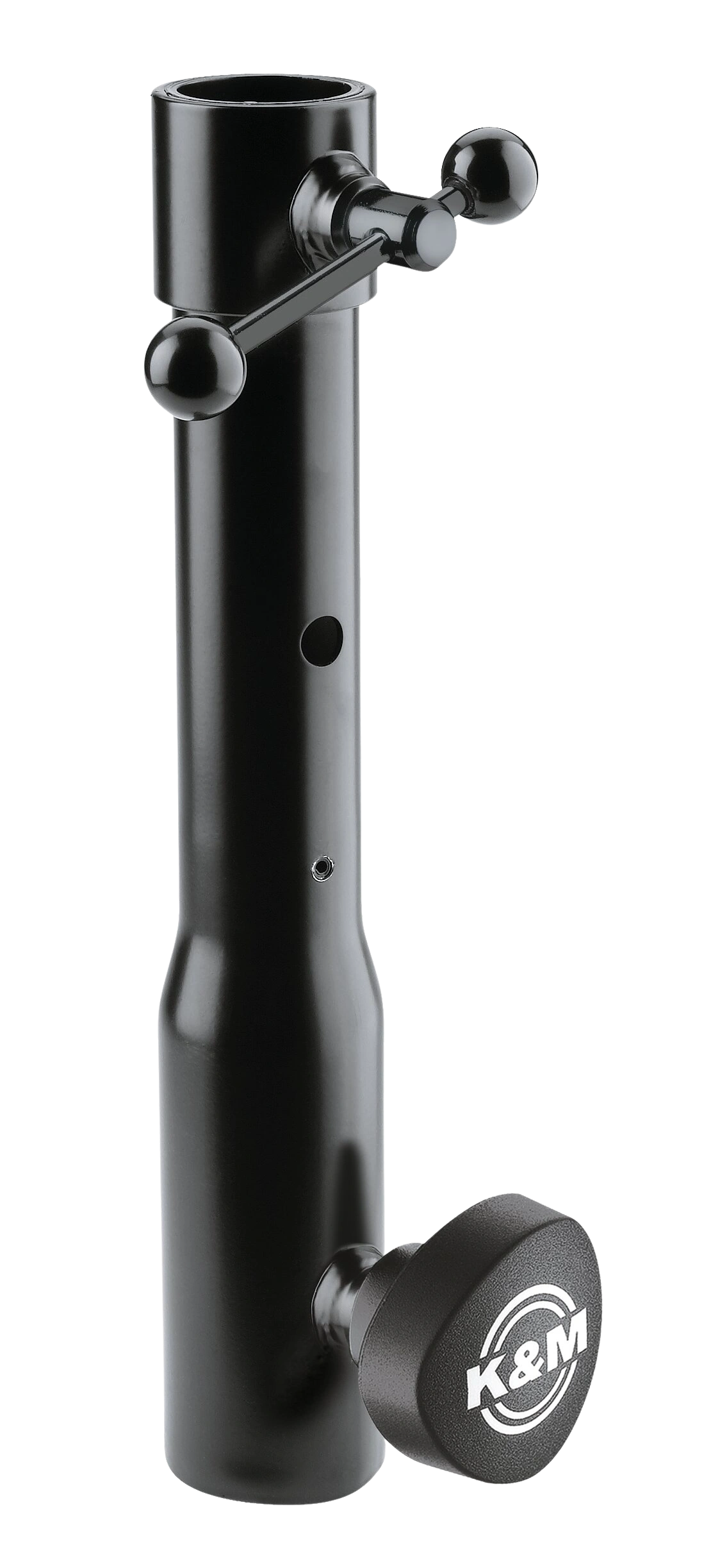 The K&M 66360 Connection Sleeve is a steel reducer flange designed to mount lighting fixtures with a 28 mm TV spigot onto stands with a 35 mm tube diameter, covering the most common stand sizes in professional lighting rigs. The sleeve slips directly over the stand tube and is secured with a clamping screw, requiring no tools beyond a standard hex key. At 249 mm in length and constructed from steel, it provides a stable, reliable connection for both lighting crossbars and individual spotlights. This adapter is well suited for lighting technicians, touring companies, and venue installation crews working with mixed fixture and stand inventories.