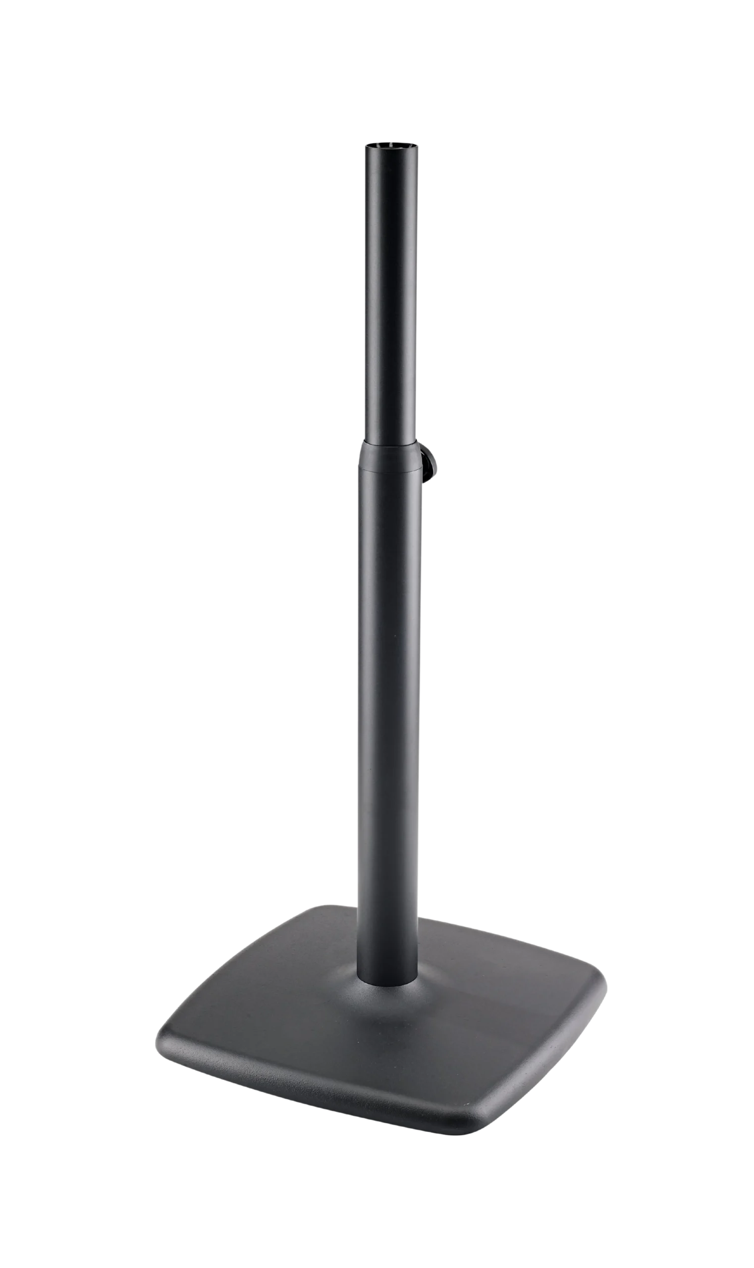 The K&M 26795 Design Monitor Stand is a professional-grade steel stand built for demanding studio, broadcast, and live performance environments where monitor stability and precise placement are critical. The cast-iron base measuring 480 x 480 mm provides a wide, stable footprint capable of supporting monitors up to 70 kg, while the 2-piece folding rod combination allows for compact storage and transport without sacrificing structural integrity. Height adjusts continuously from 794 to 1,344 mm using a spring-loaded clamping knob, giving engineers and integrators precise positioning without tools. This stand is suited for studio engineers, system integrators, houses of worship, and venues requiring a reliable, long-term monitor placement solution.