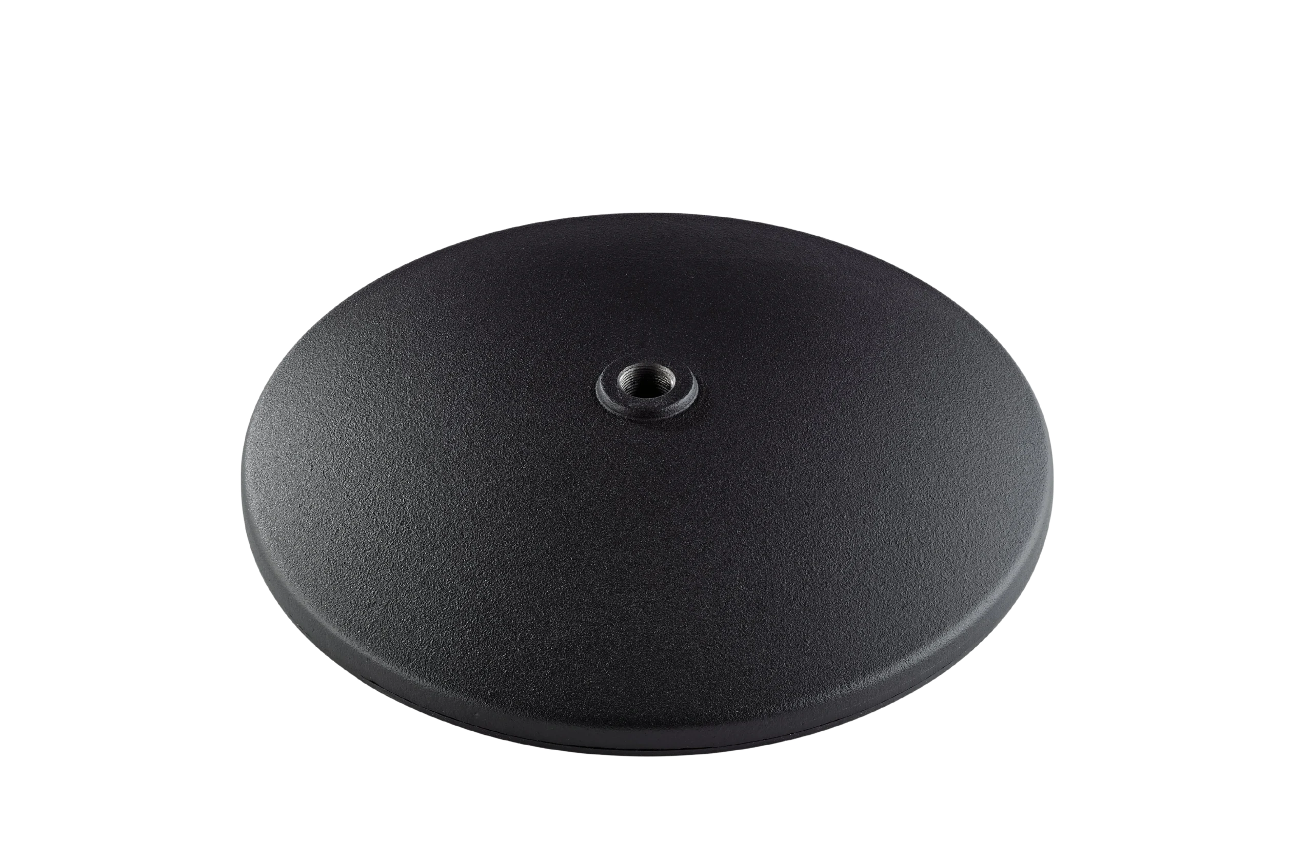 The K&M 26009 is a replacement and upgrade base plate engineered for professional microphone stand applications where stability and vibration isolation are critical. Constructed from grey cast iron with a 300mm diameter and a mass of 4.34 kg, this base provides the low center of gravity and floor-coupling weight needed to keep stands secure in high-traffic live sound, broadcast, and studio environments. The M20 x 1.25mm fine thread connector ensures compatibility with all K&M microphone stands featuring a round base. It is well suited for touring companies, houses of worship, broadcast facilities, and any installation where stand tip-over is not an option.