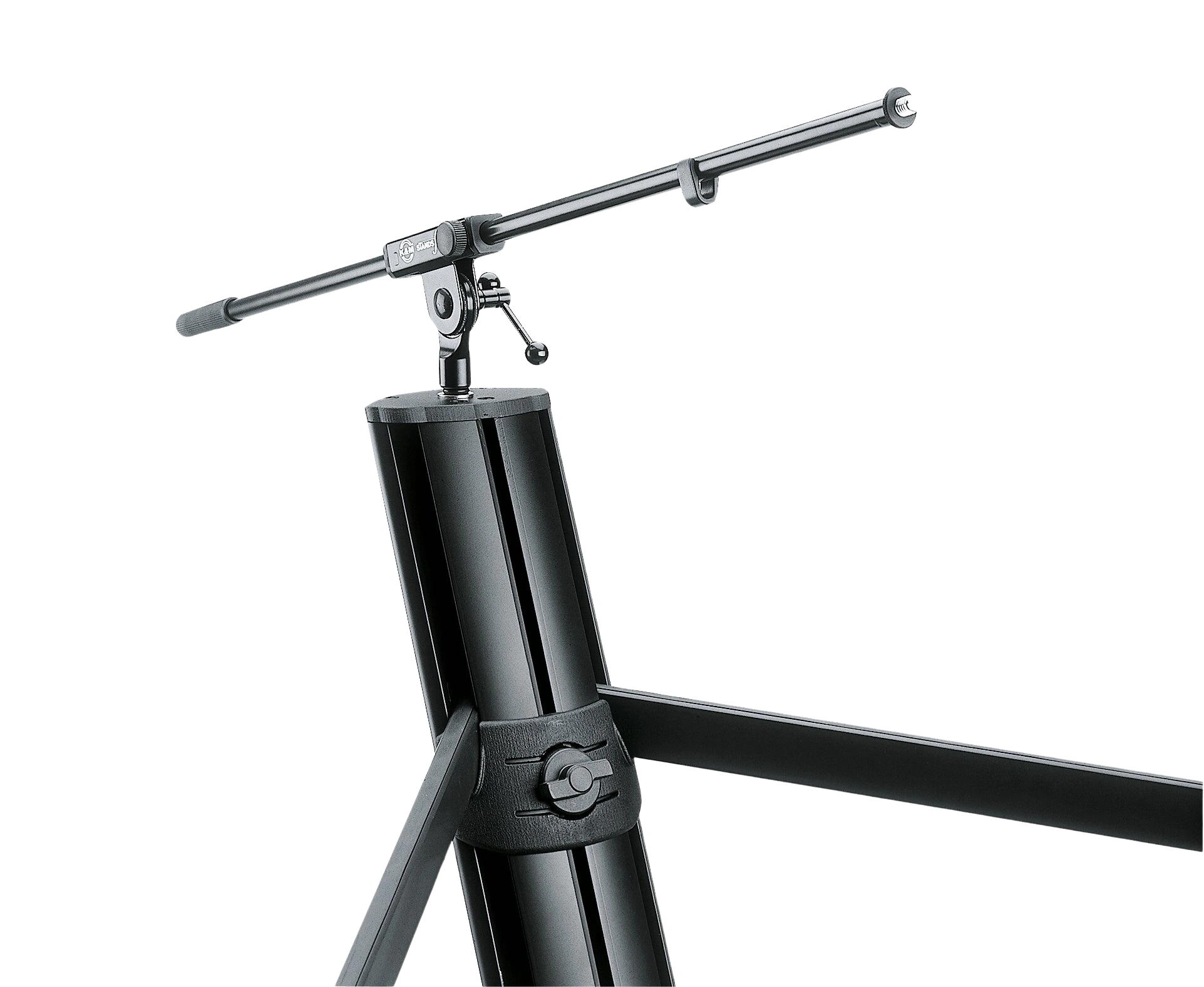 Height adjustment is infinitely variable via ergonomically shaped clamping elements, and the column features a comfortable tilt function, giving performers precise positioning without tools or complex hardware.