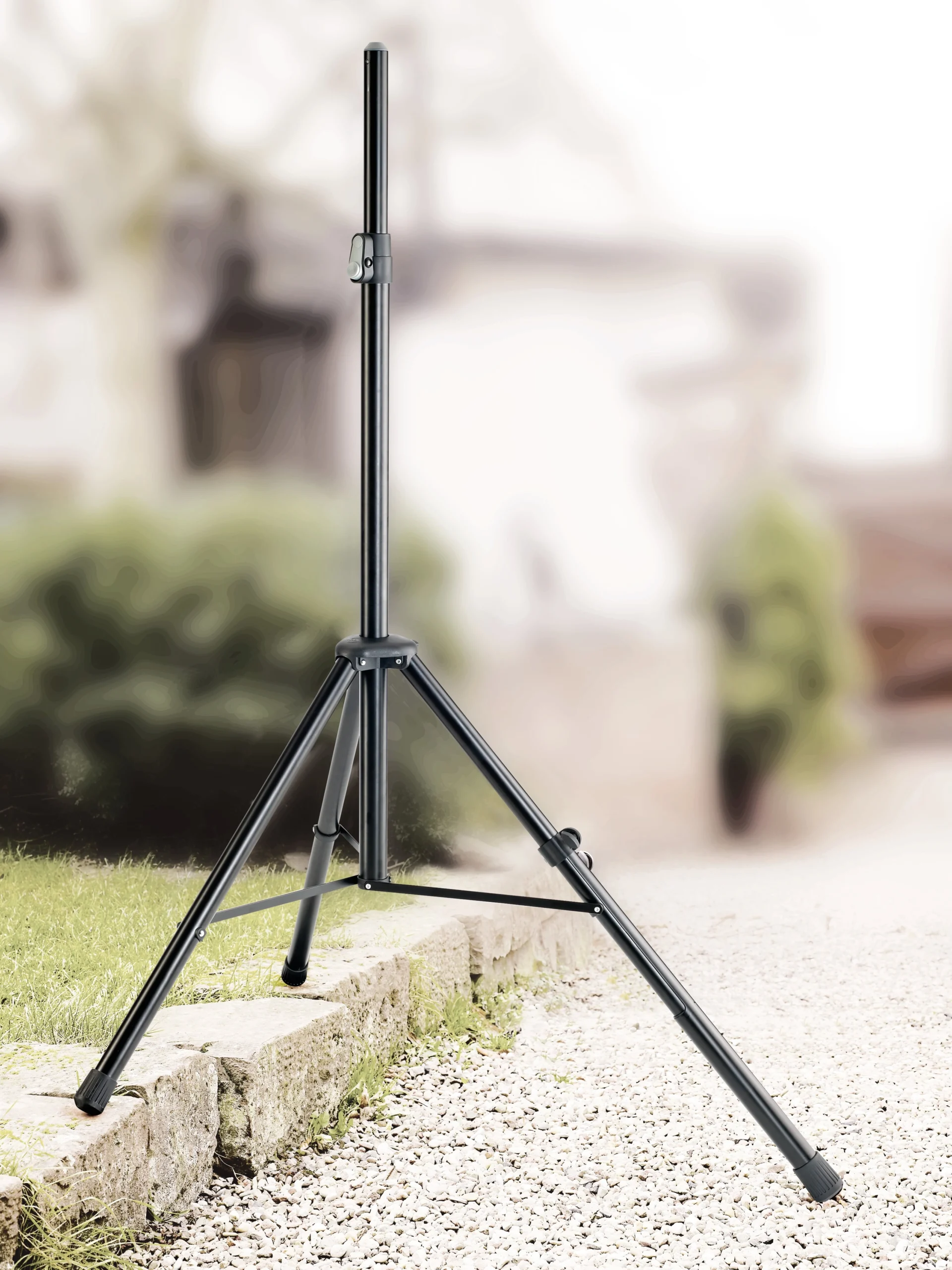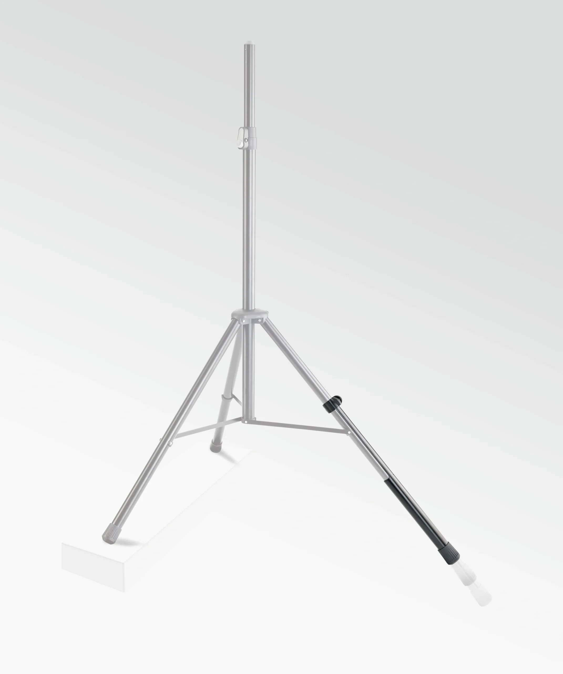 The K&M 21445 Leveling Leg is a purpose-built steel adapter for König and Meyer speaker and lighting stands, engineered to maintain stable, plumb positioning on uneven surfaces. Designed for stage, studio, and rehearsal room environments, it accommodates surface irregularities including stairs, steps, and sloped surfaces up to 200 mm. The adapter fits stands with a 35 mm tubing diameter and is constructed from steel for reliable load-bearing performance. This accessory is suited for audio engineers, system integrators, and touring crews who require consistent stand positioning across varied floor conditions.