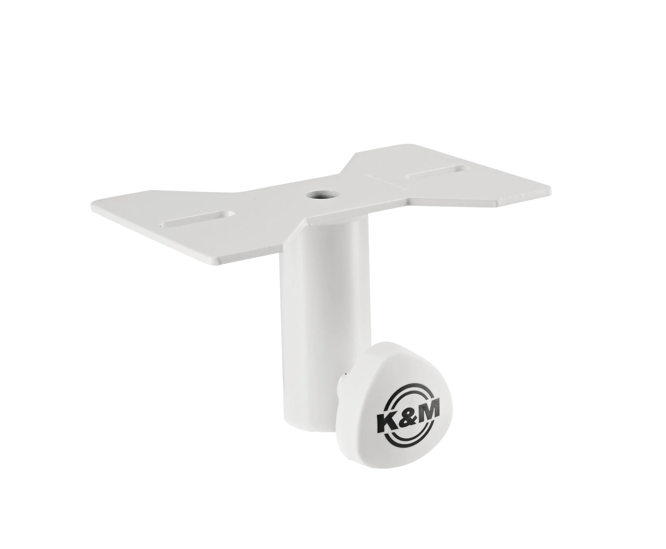 The K&M 195/8 Mounting Adaptor is a steel slip-on flange designed to mount speakers directly onto stands with a 35 mm tube diameter. It accommodates a wide range of cabinet mounting configurations with hole spacing adjustable from 100 to 152 mm, and supports a maximum load capacity of 50 kg. This adaptor is well suited for installed sound applications, houses of worship, and touring rigs where a clean, white finish is required to match speaker or architectural aesthetics. The pure white powder coat finish integrates cleanly with white-finish speaker cabinets and installation environments.