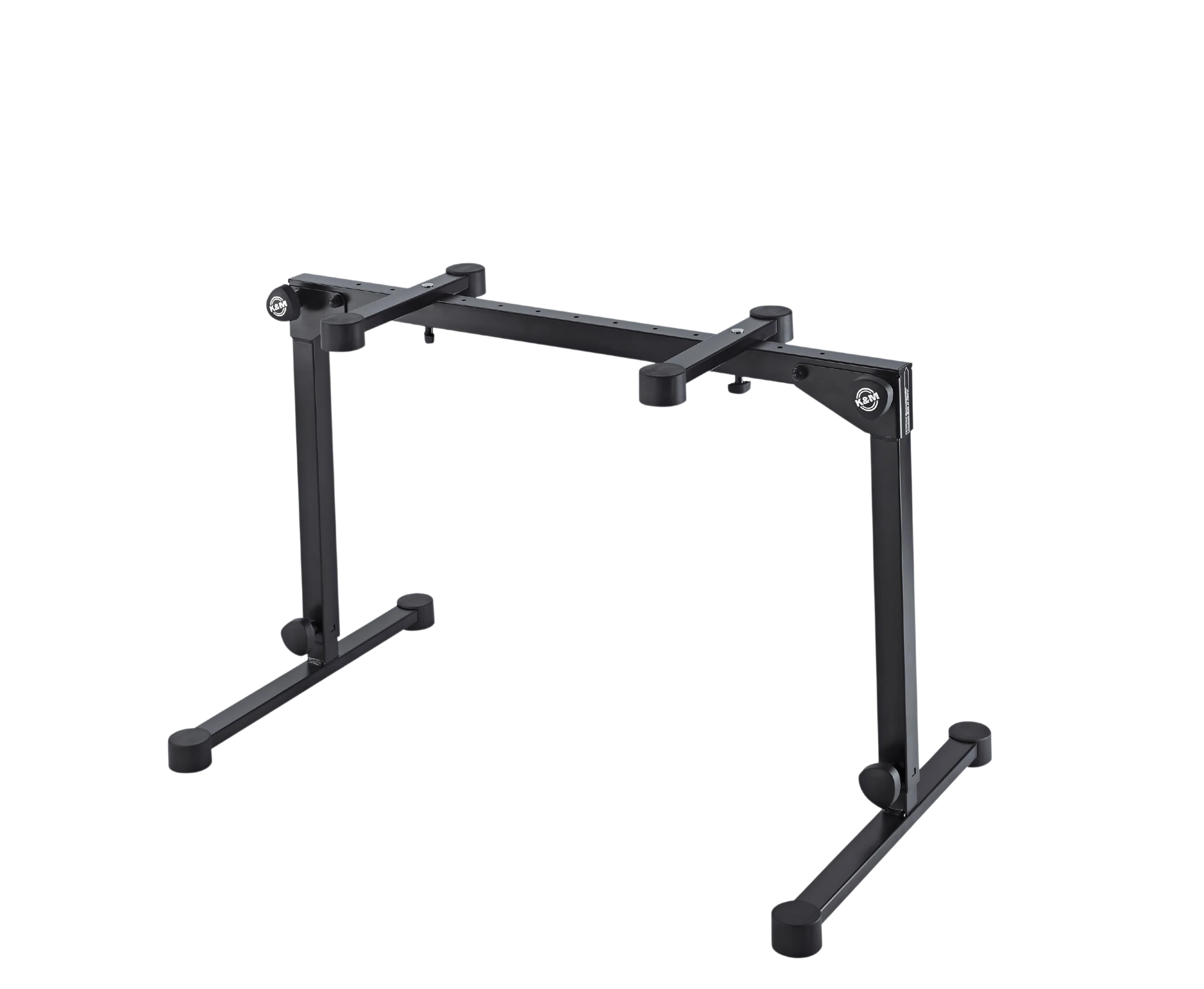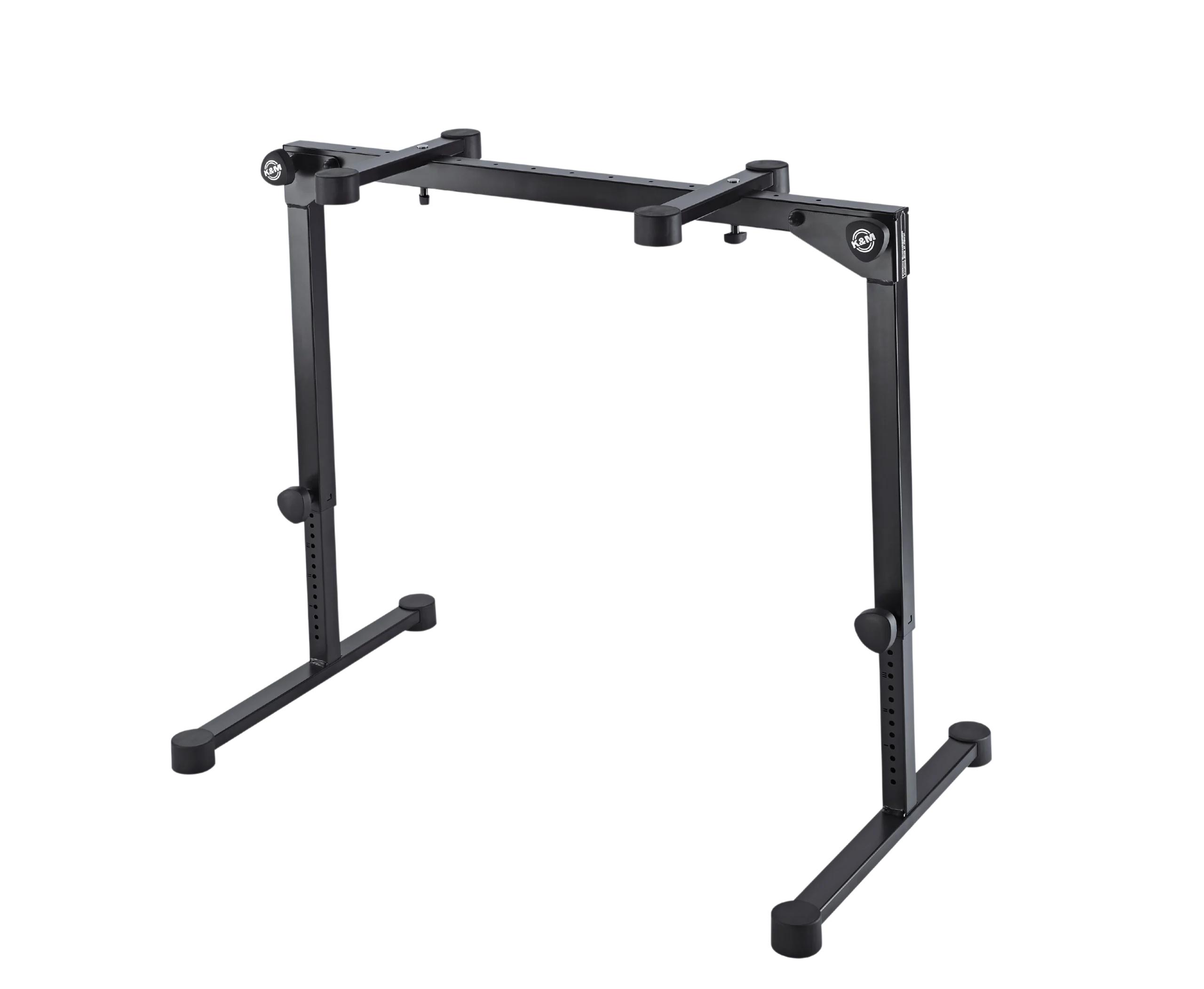 K&M electric keyboard stand black finish front view with adjustable height mechanism