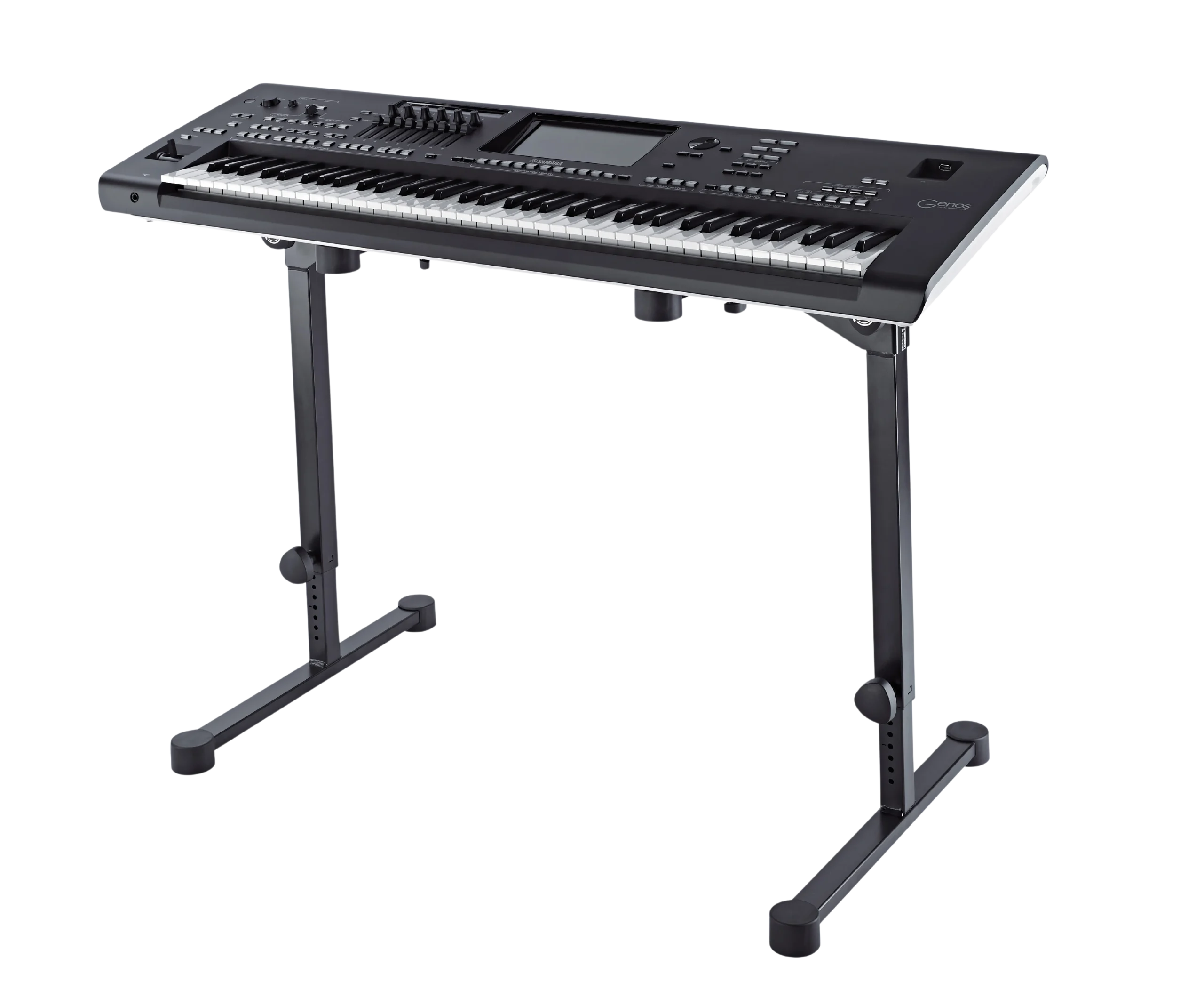 • Levelling End Caps — large round end caps stabilize the stand on uneven stage and venue floors without additional hardware