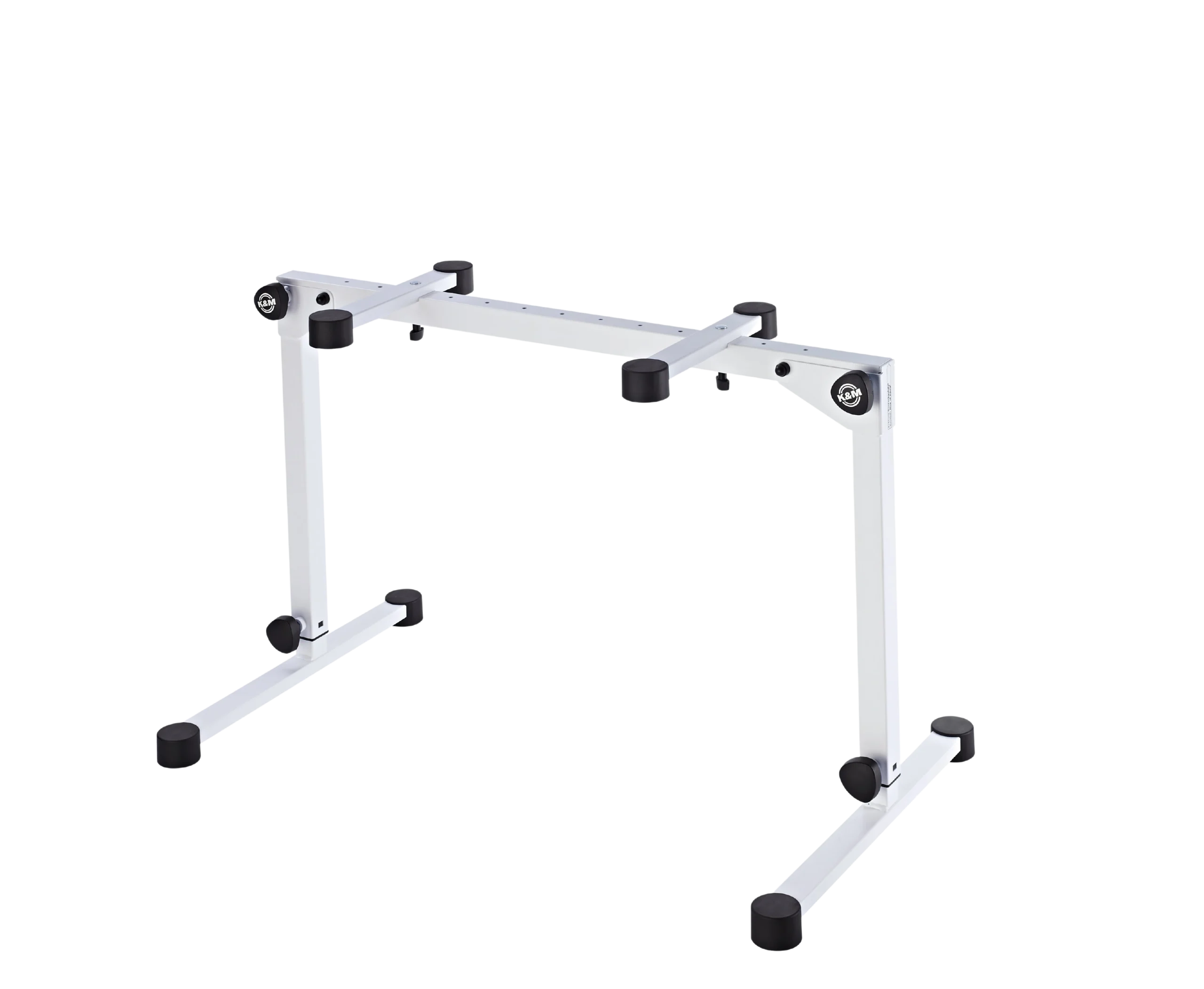 The K&M 18820 Omega Pro is a Topline-grade, table-style keyboard stand engineered for professional keyboard players and touring musicians who require a stable, versatile platform in any performance environment. Constructed from compact steel tubing, it supports a maximum load capacity of 80 kg and provides height adjustment from 600 to 1,020 mm via spring-loaded clamping knobs on both columns. The support width adjusts from 122 to 729 mm, accommodating a wide range of keyboard sizes and configurations. This stand is well suited for live touring, houses of worship, broadcast stages, and studio setups where reliability and quick setup are essential.
