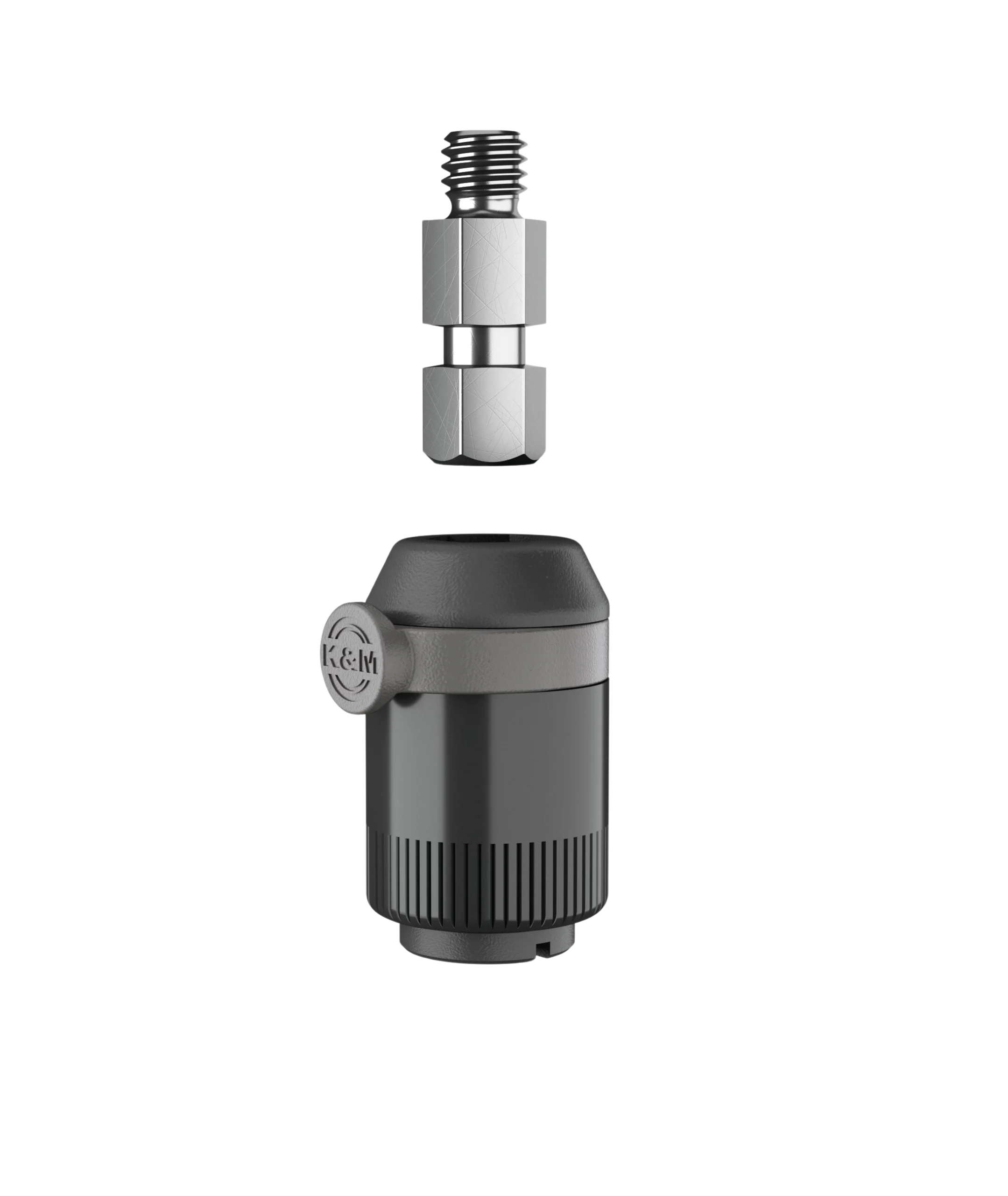 - 3/8″ Male Thread — compatible with the K&M Quick Release Adapter 23900 and any 3/8″ threaded mount