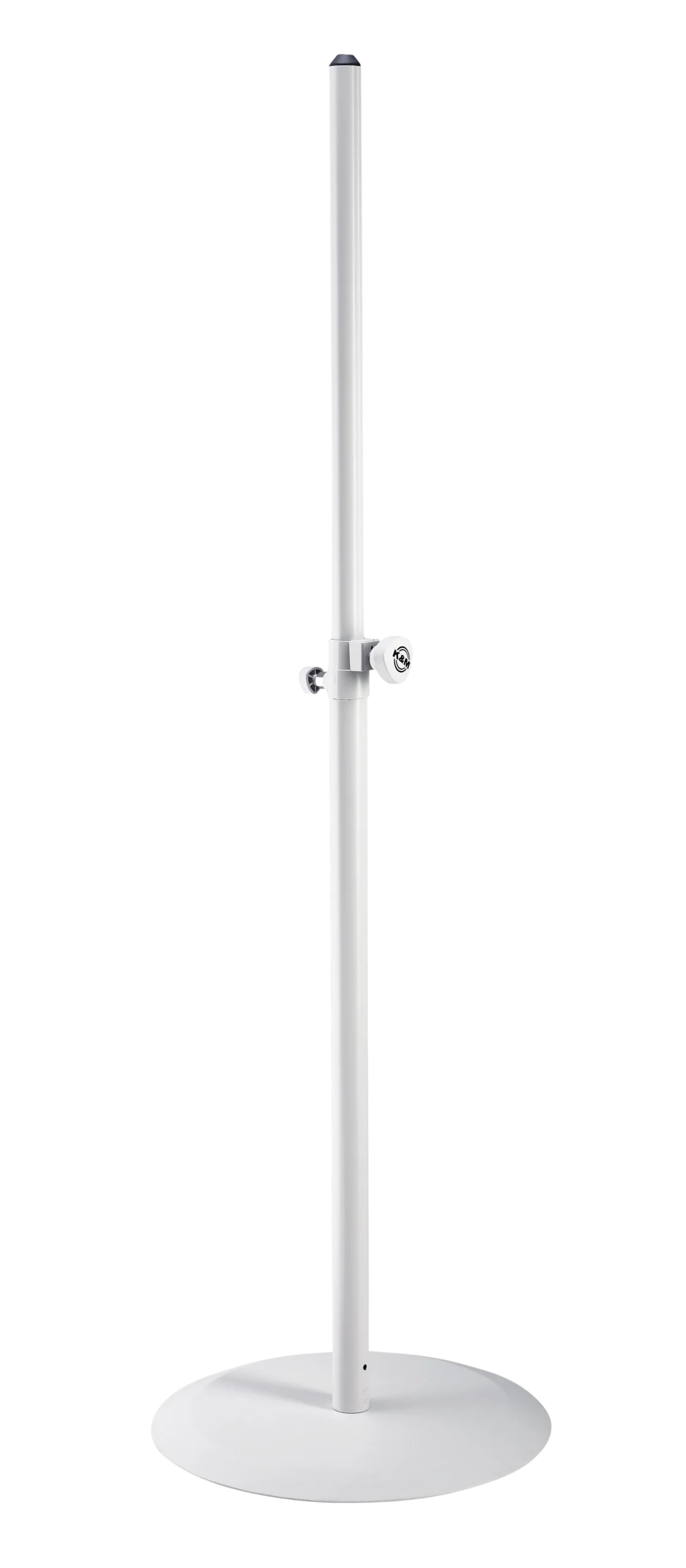 K-M Soft-Touch microphone stand with black clutch and threaded base, front view