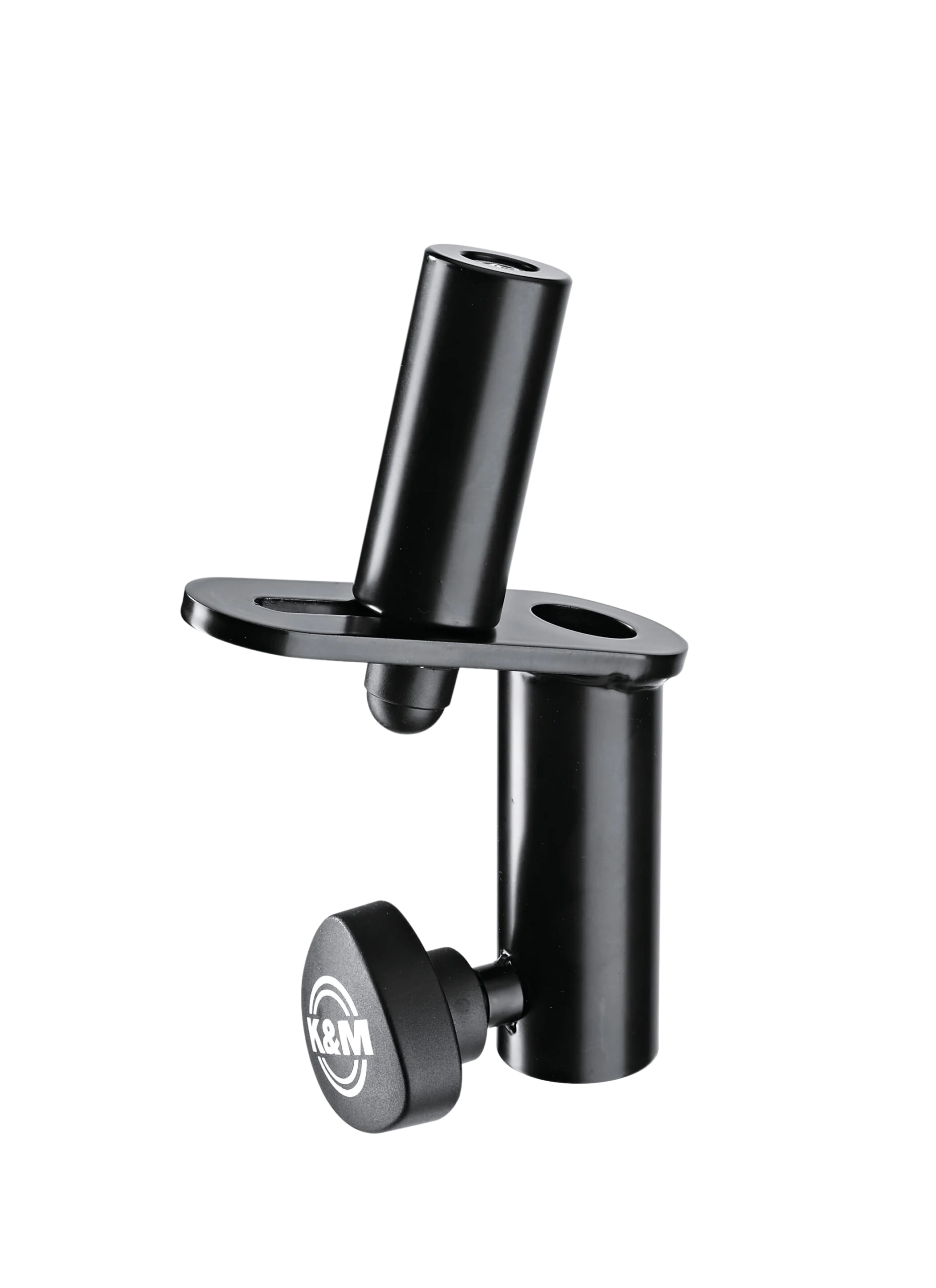 Constructed entirely from steel and finished in black, the 19671 integrates cleanly into existing K&M stand systems, with a 50 mm adjustment range on the mounting bolt for precise cabinet positioning.