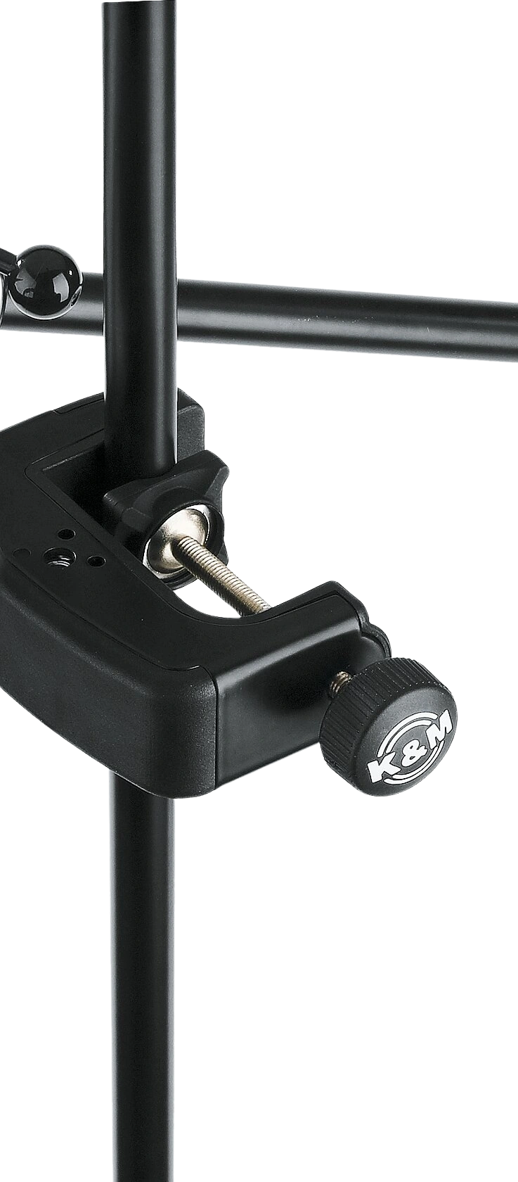 K&M distance rod with ring lock mechanism mounted in professional audio equipment setup