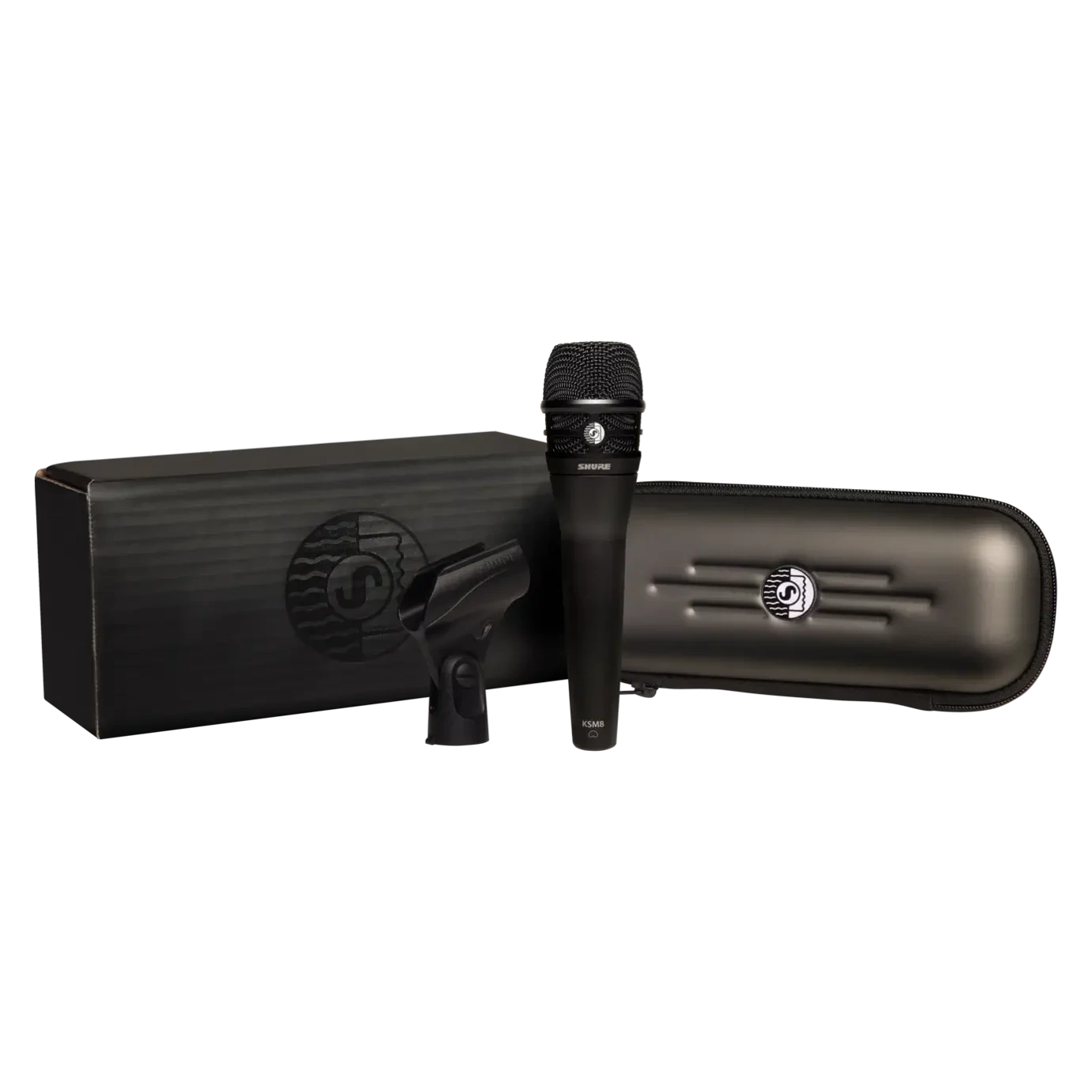 The Shure KSM8/B is a premium cardioid dynamic vocal microphone featuring dual ultrathin diaphragms and reverse airflow technology for exceptional control of proximity effect, presence peaks, and stage bleed.
