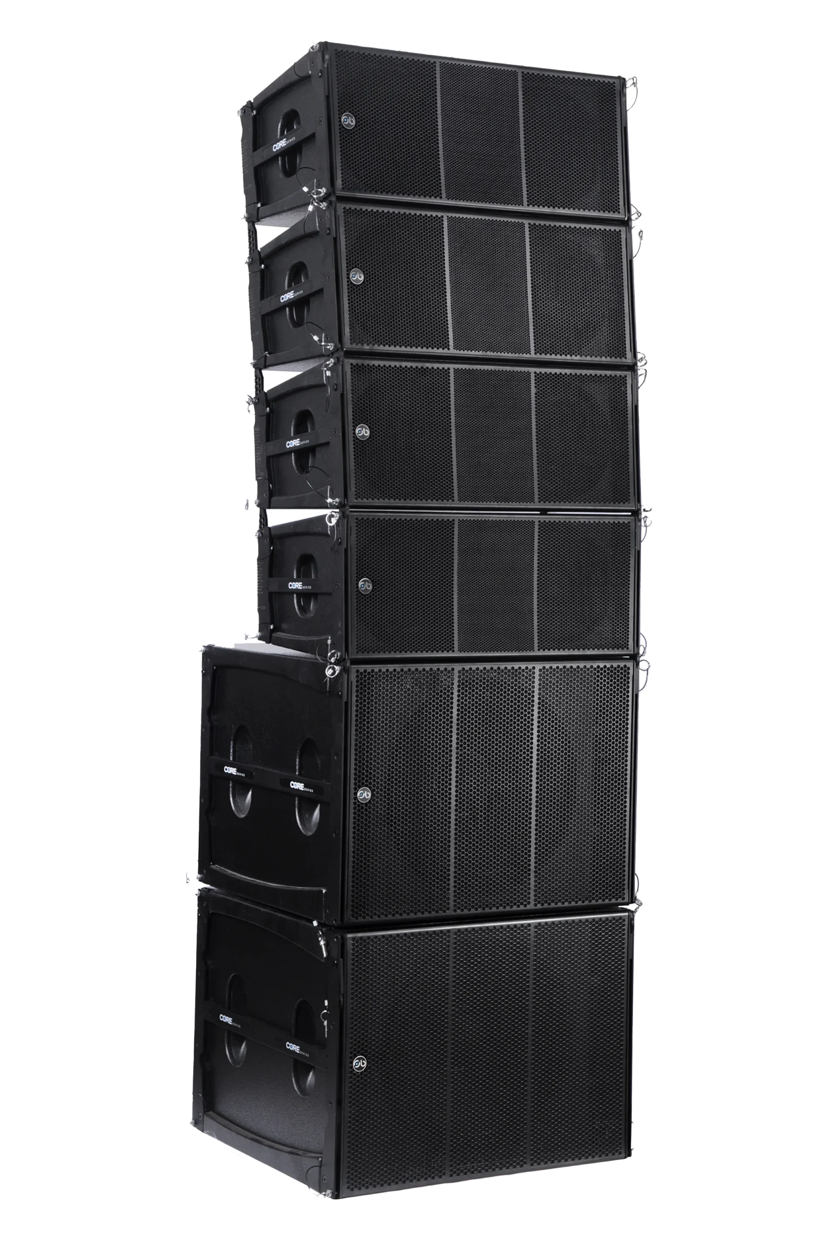 The CORE10218SA features a single ultra-long 18-inch woofer with a 4-inch voice coil and neodymium magnet, front-loaded and reflex-loaded at the rear to extend low-frequency output below the natural cutoff point. This design ensures high output capability and low-frequency extension. The system is compact and lightweight, allowing for both flown and ground-stacked configurations. Its proprietary rigging system is compatible with the CORE102A, CORE102P, and CORE10218SP, facilitating flexible deployment options.